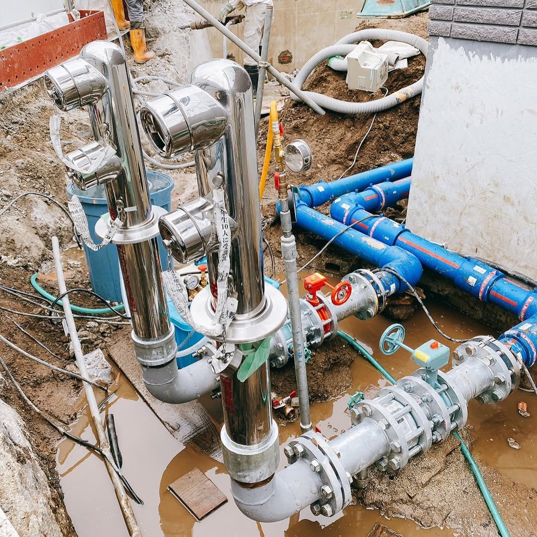 連結送水管設備工事|スタンド型送水口取り付けと耐圧試験の実績